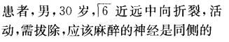 选项 A.下牙槽神经+舌神经 B.下牙槽神经 C.下颌神经+舌神经+颊长神经 D.下牙槽神经+颊长神经 E.下牙槽神经+舌神经+颊长神经