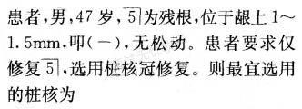 选项 A.纤维桩核 B.预成桩核 C.金属铸造桩核 D.银汞桩核 E.银粉玻璃离子桩核