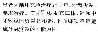 选项 A.剩余牙体存在薄壁弱尖 B.剩余牙体组织过少 C.咬合力过大 D.充填体过大 E.充填材料选择不当