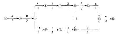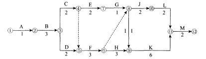 背景资料 某施工单位承担的矿井地面主要建筑的施工进度安排见下图,其中C、F、J都要使用塔吊,而施工单位仅有1台塔吊,业主要求全部工程必须在24个月内完成...