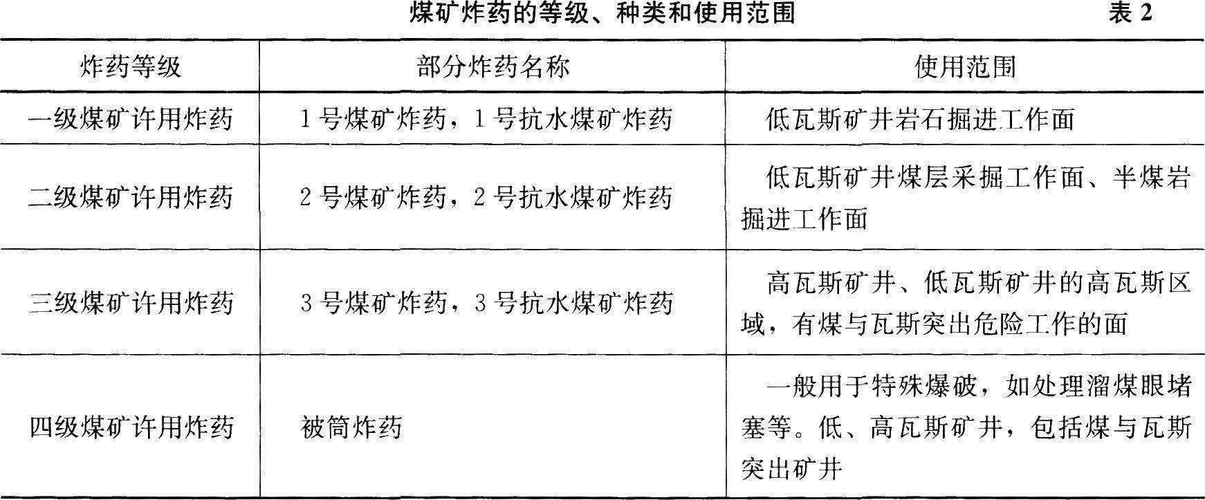 解析 本题考核的是煤矿炸药的使用范围。在瓦斯矿井中必须使用煤矿许用炸药和煤矿许用电雷管,也不得将用于低瓦斯矿井的炸药用于高瓦斯矿井中。煤矿许用炸药的安全等级及使用范围见表2。