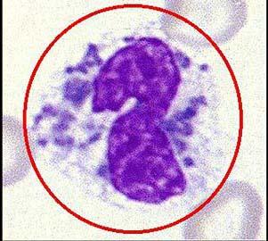 图所示白细胞属哪一种形态异常 ( )A、Alder-Reillyl畸形B、May-Hegglin畸形C、Peger-Huet畸形D、Che...