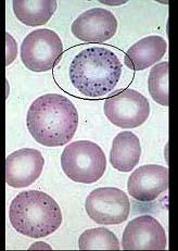 选项 A、疟原虫 B、网织红细胞 C、杜勒小体 D、嗜碱性点彩红细胞 E、H-J小体