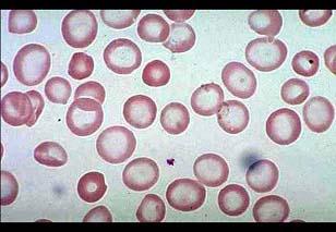 问题 女性28岁,头晕乏力、面色苍白2年余。检验:红细胞2.6×10/L,血红蛋白60g/L,MCV,MCH,MCHC均低于正常;血涂片如图。最不可能是哪项贫血 ( )