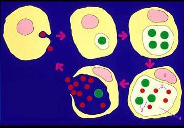 问题 如图为衣原体在宿主细胞中的生长发育示意图,图中14分别指的是 ( )