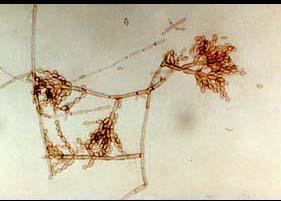 选项 A、大分生孢子 B、以上均不对 C、芽殖型分生孢子 D、厚膜孢子 E、菌丝型分生孢子