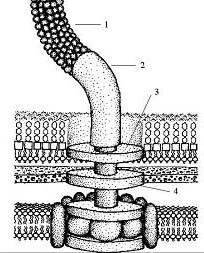 问题 如果所示为细菌鞭毛的模式图,其中结构14分别是 ( )