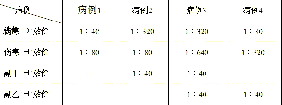 问题 以下是4例肥达反应的结果,请给出分析结果。 根据上述肥达反应结果,病例2可能是