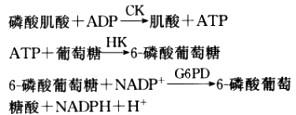 问题 连续检测法测定血清CK活性浓度的酶偶联反应如下图,其中G6PD被称为