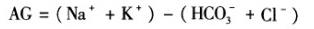 解析 AG是指血清中所测阳离子总数与阴离子总数之差,即,有机酸根、等固定酸增多(如乳酸酸中毒、酮症酸中毒),使血浆浓度下降,则AG升高。