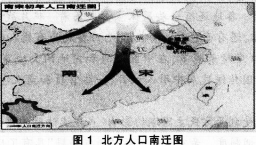 图1显示的人口迁徙情况发生在下列哪一时期 (  ) A.秦汉时期 B.魏晋南北朝时期 C.隋唐时期 D.两宋时期