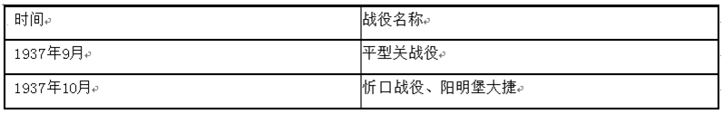解析 抗日战争分为三个阶段。第一阶段从1937年7月“七七事变”到1938年10月广州、武汉失守,是战略防御阶段。第二阶段从1938年10月至1943年12月。是战略相持阶段。第三阶段从1944年1月解放区战场局部反攻至1945年8月日本宣布无条件投降,是战略反攻阶段。结合表格中的时间可知这些战役发生在战略防御阶段。
