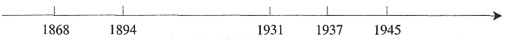 解析 本题考查近代我国与主要国家的外交关系。根据图示给出的重要年份可判断为图示指的是我国与日本的关系。1868年日本明治维新,1894年中日甲午战争,1931年日本开始局部侵华,1937年日本全面侵华开始,1945年抗日战争胜利。