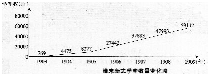 解析 根据图表可知,在1905年后,新式学堂的数量急剧增长,这是清末新政中“废科举,办学堂,派留学”这一措施推动的结果。