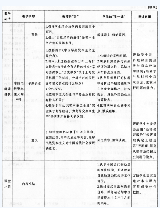 根据下列材料设计教学片段。 (1)《普通高中历史课程标准(实验)》:简述鸦片战争后中国经济结构的变动和近代民族工业兴起的史实,认识近代中国资本主义产生的...