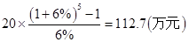 某企业为设立技术改造基金,从第一年至第五年,每年存入银行20万元,存款年利率为6%,复利计息,问第五年末该基金内有( )万元。A.104.8