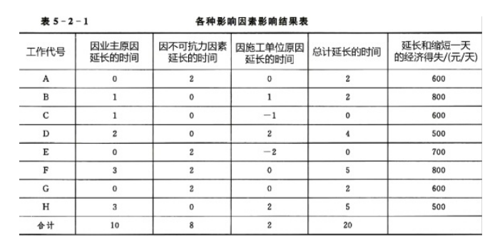 问题 某工程建设项目的网络计划见图5-2-3,网络计划工期为84天。 在施工过程中,由于业主原因、不可抗力因素和施工单位原因,对各项工作的持续时间产生了一定的影响,其 结果见表5-2-1(正数为延长工作天数,负数为缩短工作天数)。 由于工作的持续时间变化,网络计划的实际工期为89天,见图5-2-4。 问题: 1.确定网络计划图5-2-3和图5-2-4的关键路线。 2.承包人要求延长合同工期18天和按实际工程延长合同工期5天是否合理?为什么? 3.监理人应签署延长合同工期几天合理?为什么?试用网络计划图表示。 4.监理人应签署索赔金额多少为合理?为什么?
