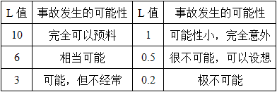 事故或危险性事件发生的可能性L值为6,表示(  )。A.完全可以预料 B.可能,但不经常 C.相当可能 D.可能性小,完全意外