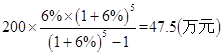 问题 某项目期初以年利率6%投资200万元,拟计划5年内等额回收全部投资复利本利和,每年可回收的资金为(  )万元。
