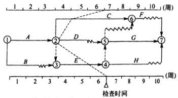 相关内容:工程,代号,时标,网络,计划,下图,根据,实际,进度,检查,结果,前锋线,如点,看出,工作,影响,工期