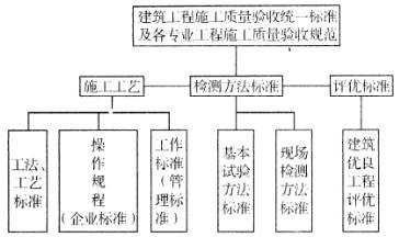 选项 A:政府质量监督管理体系 B:工法与施工工艺标准 C:施工操作规程 D:企业管理工作标准 E:现场检测方法标准