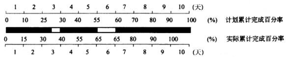 解析 通过比较同一时刻实际完成任务量累计百分比和计划完成任务量累计百分比,判断工作实际进度与计划进度之间的关系:①如果同一时刻横道线上方累计百分比大于横道线下方累计百分比,表明实际进度拖后,拖欠的任务量为二者之差;②如果同一时刻横道线上方累计百分比小于横道线下方累计百分比,表明实际进度超前,超前的任务量为二者之差;③如果同一时刻横道线上下方两个累计百分比相等,表明实际进度与计划进度一致。