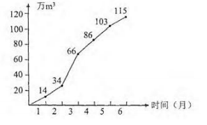 某土方工程月计划完成工程量累计曲线(单位:万 m3)如下图所示,该工程 1~4 月份每月实际工程量分别为 18、22、27 和 15 万 m3,则通过比较...