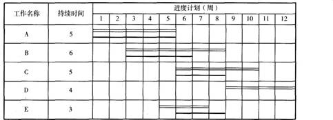 问题 某工程项目的计划和截止到第8周周末的实际进度如下图所示(双线条表示计划进度,粗实线表示实际进度),如果各项工作均为匀速进行,则截止第8周末(  )