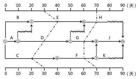相关内容:工程,代号,时标,网络,计划,天和,70天时,检査,实际,进度,前锋线,下图,结论,检査时,工作