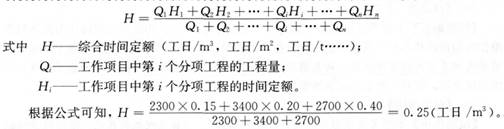 某工作是由三个性质相同的分项工程合并而成的。各分项工程的工程量和时间定额分别是:Q=2300m3,Q2=3400m3,Q3=2700m3;H1=0.15工...