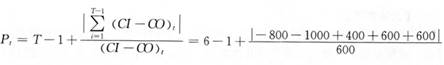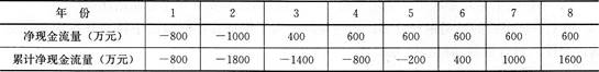 解析 考点: “静态投资回收期的计算分析”。项目投资回收期(Pt)更为实用的表达式为: 式中T——项目各年累计净现金流量首次为正值的年份数; (CI-CO)t——第t年的净现金流量。 本题中第6年累计净现值首次出现正值。故T=6。根据公式可知: 因此,本题的正确答案为B。