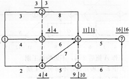 问题 某工程双代号网络计划如下图所示,图中已标出每个节点的最早时间和最迟时间,该计划表明(  )。
