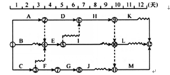 问题 某分部工程双代号时标网络计划如下图所示,其中工作C和I的最迟完成时间分别为第(  )天。