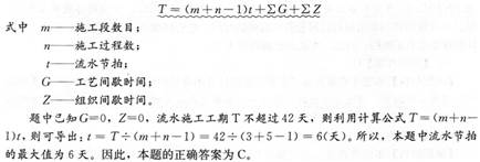 解析 考点:“固定节拍流水施工”.固定节拍流水施工工期T的计算公式为: