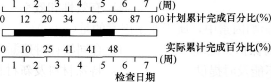 问题 某混凝土工程计划进度与实际进度如下图所示,以总量的百分比计,该图表明本工程(  )。