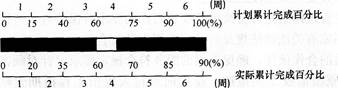 选项 A.在第1周内实际进度拖后 B.到第2周末拖欠5%的任务量 C.在第3周内按计划正常运行 D.在第4周前半周末按计划执行 E.到第6周末未按计划完成