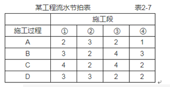 某工程由4个施工过程组成,分为4个施工段进行流水施工,其流水节拍(天)见表2—7,则流水施工工期为()天。 A.17天 B.18天 C.19天 ...