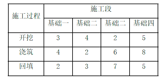 问题 某建筑物基础工程的施工过程、施工段划分和流水节拍(天)见下表。如果组织非节奏流水施工,则基础二浇筑完工时间为第()天。
