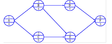 某工程的网络计划如下图所示时间单位为天),图中工作B和E之间、工作C和E之间的时间间隔分别是 ( )天 A.1和0 B.5和4 C.0和0 D.4和4