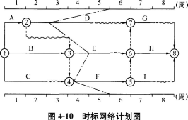 相关内容:工程,代号,时标,网络,计划,实际,进度,前锋线,如图,10所示,图中,看出,工作,影响,工期