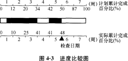 问题 某混凝土工程计划进度与实际进度如图4-3所示,以总量的百分比计,该图表明本工程()。
