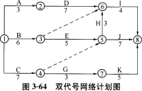 问题 在图3-64所示的双代号网络计划中,关键线路有()。