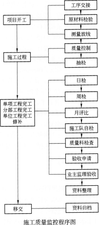 解析 (1)施工方案的核心包括:确定总的施工流向和施工顺序;选择施工方法;确定施工机械类型和数量;施工方案的技术经济比较。 (2)总工程师进行交底的主要内容应包括:工程概况、施工特点(难点)分析和施工部署,主要施工方法,施工总进度计划,全场性的施工准备工作计划,施工资源总需要量计划,施工总平面图和各项主要经济技术指标。除此之外,还需确定编写施工方案的清单,解决施工难点的策划方向等。 (3)施工质量监控程序,如图所示: