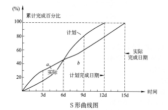 问题 1.背景 某机场场道全长3200m,宽度45m,根据当地情况,设计底基层采用级配碎石、基层采用水泥粉煤灰稳定碎石。为了有效地对施工进度进行控制,施工单位绘制了S曲线(见下图),利用S曲线将实际施工进度与计划施工进度进行了对比。 2.问题 (1)该工程最终推后几天完成 (2)该工程计划进度与实际进度相符的时间是第几天 (3)第9天的施工进度状况如何