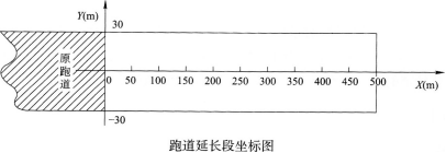 问题 1.背景 某机场原跑道长2700m,宽60m,可供B747—200机型使用。为了满足B747—400机型的使用,2010年在原跑道的一端延长了500m,其道面分块尺寸为5m×5m。之后在组织验收时,监理单位对跑道延长段道面平整度采用了如下的检查方法: (1)在计算机上随机抽取了下表所示的栏号,根据栏号确定测点位置。 平整度测点相对位置一览表 (2)以跑道延长段中线为横坐标x,跑道宽度方向为纵坐标】,,坐标原点为延长段起始端中点,建立了下图所示坐标系: (3)现场测定各点的平整度结果如下表所示: 各测点平整度汇总表 2.问题 (1)依据上述条件计算实际取点中离跑道中线最远的点、离跑道中线最近的点、离原跑道端最近的点及离原跑道端最远点的实际位置坐标(x,y)(单位m),写出计算过程,并列表给出计算结果(序列号依照上表)。 (2)计算所测平整度数据的平均值,写出计算过程。 (3)根据以上计算结果,能否给出平整度合格的结论说明理由。