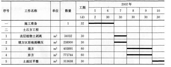 背景 我国北方某机场场道工程计划2002年5月30日开工,2003年10月8日竣工,工期共计498d(日历天)。本工程的施工全过程共分五个阶段:第一阶...