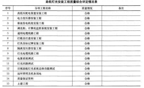 解析 分析与答案 (1)助航灯光主要工作量包括: 1)跑道灯光系统:中线灯94套,跑道边灯92套,跑道入口灯42套,末端灯42套,入口翼排灯20套。 2)滑行道灯光系统:滑行道边灯,滑行道中线灯,警戒灯。 3)进近灯光系统:跑道两端均为工类精密进近,进近灯各为166套,主降方向1套21盏顺序闪光灯,次降方向设障碍灯50套。 4)精密进近航道指示器:两端各设一套,设在由飞机进近时驾驶员看到的跑道左侧。 5)单灯故障检测装置:只对跑道中线灯、进近灯安装共计426套。 6)敷设电缆。 7)安装隔离变压器、灯箱、灯盘。 8)助航灯光计算机监控系统的安装、调试。 (2)工程施工应严格按设计要求并遵照《民用机场目视助航设施施工及验收规范》MH/T 5012--2010进行。 (3)助航灯光安装工程质量综合评定情况,见下表: 4.解析 跑道长2800m,宽45m,中线灯不大于30ml套,跑道两端都安装中线灯,所以需要94套中线灯。跑道边灯不大于60ml套,跑道两端都不安装边线灯,跑道两侧都安装边线灯,所以需要92套边线灯。跑道人口灯在跑道两端均匀分布,如果按入口翼排灯的间距2.5 m 1套,宽45m,两边灯线间距约为45+6=51 m,51/2.5约为20套,人口两端都有灯,每端需要21套,两端人口需要42套。末端灯和入口灯同样需要42套。人口翼排灯每端需要10套,两端人口需要20套。 进近灯光系统:跑道两端均为工类精密进近,每端30排灯,每排5套灯,一个长排灯,加16套,进近灯各为166套。主降方向1套21盏顺序闪光灯,次降方向设障碍灯50套。 单灯故障检测装置:只对跑道中线灯、进近灯安装,94+166+166=426套。