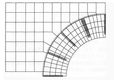 背景 民用机场滑行道道面与道肩无明显区别时,要求画滑行道边线,而且在滑行道边线转弯处设置下图所示的横道线(横道线指向圆心)。某施工单位的技术人员在只有...