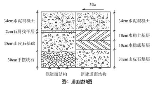某机场位于东北寒冷地区,始建于上世纪八十年代末。因站坪机位不足,需扩建站坪6万平方米。原站坪结构与新建站坪结构及坡度设计如图4所示。