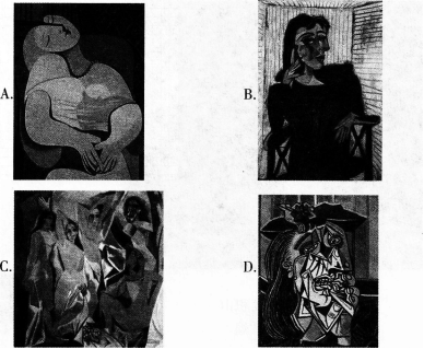 问题 如图4,下列选项中,毕加索创作的立体主义标志性作品是(  )。